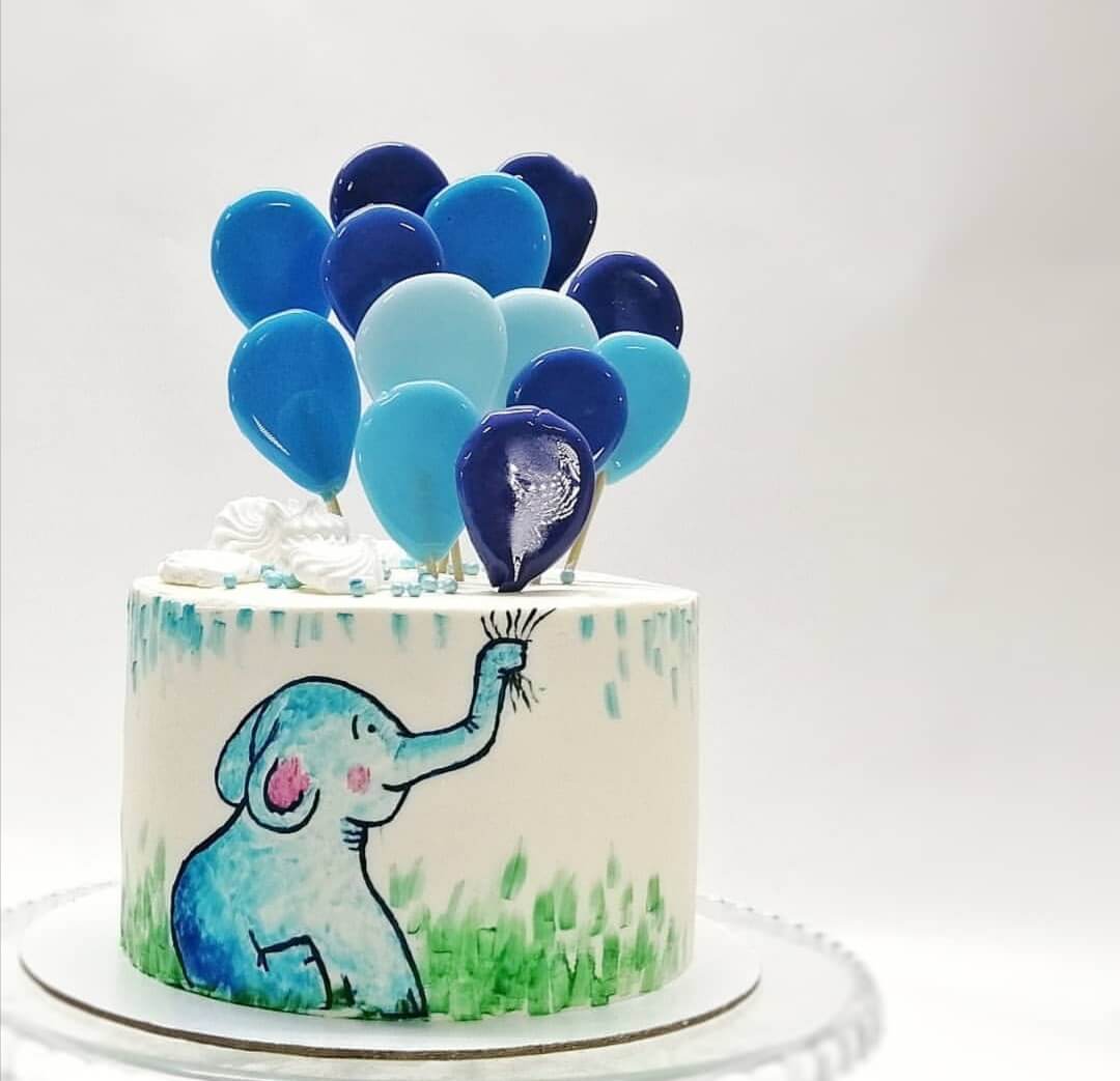 Карамельные шары и нежность крема отлично сочетаются во главе с очаровательным милым слоником на поздравительном тортике