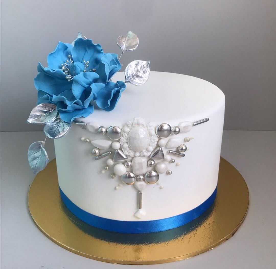 Декор данного торта напоминает такие любимые девушками драгоценные украшения!