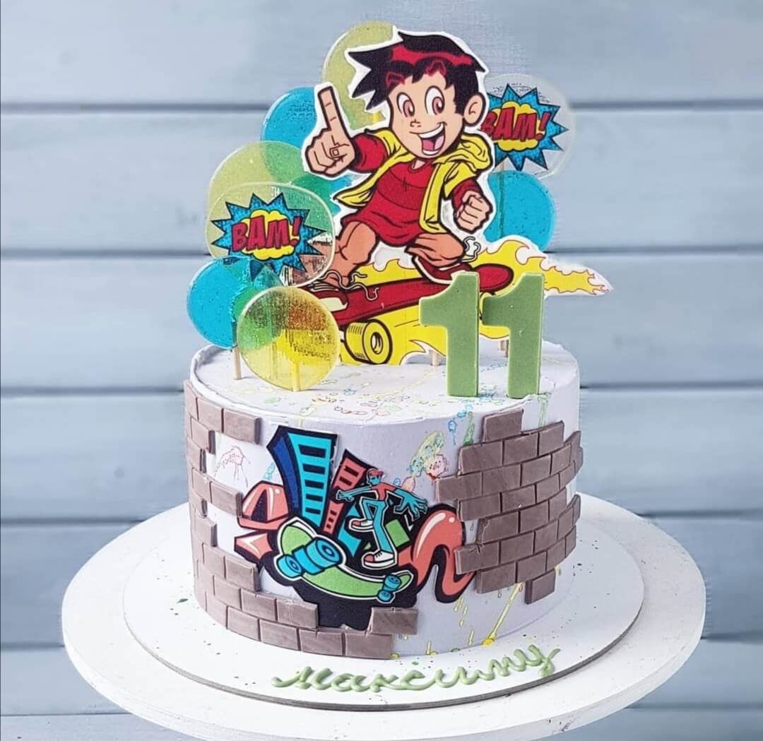 Скейтеры тоже любят сладости! Поздравьте своего мальчика (с вечно разбитыми коленками) нашим ярким и вкусным тортиком!